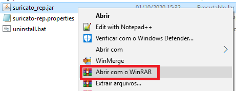 Dentro do suricato_rep.jar, cole o arquivo suricato-rep.propeties