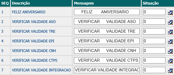 O sistema exibirá a tela de configuração de mensagens pré definidas