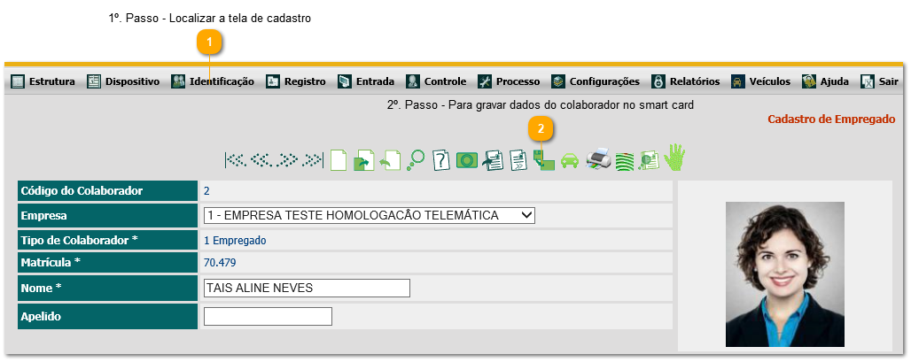 O sistema exibirá a tela de opções de cadastro de Colaborador