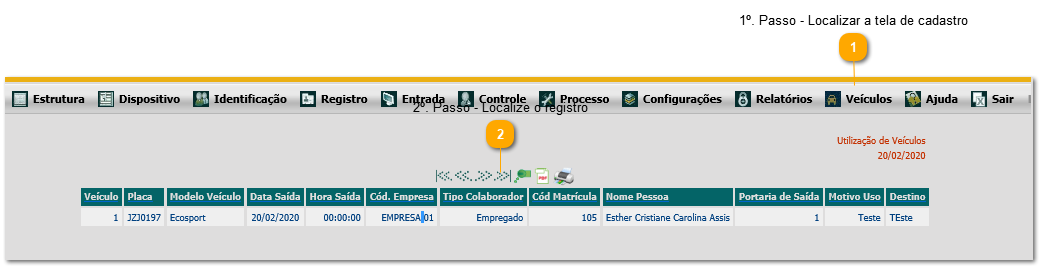 O sistema exibirá a tela de opções de consulta de uso dos veiculos