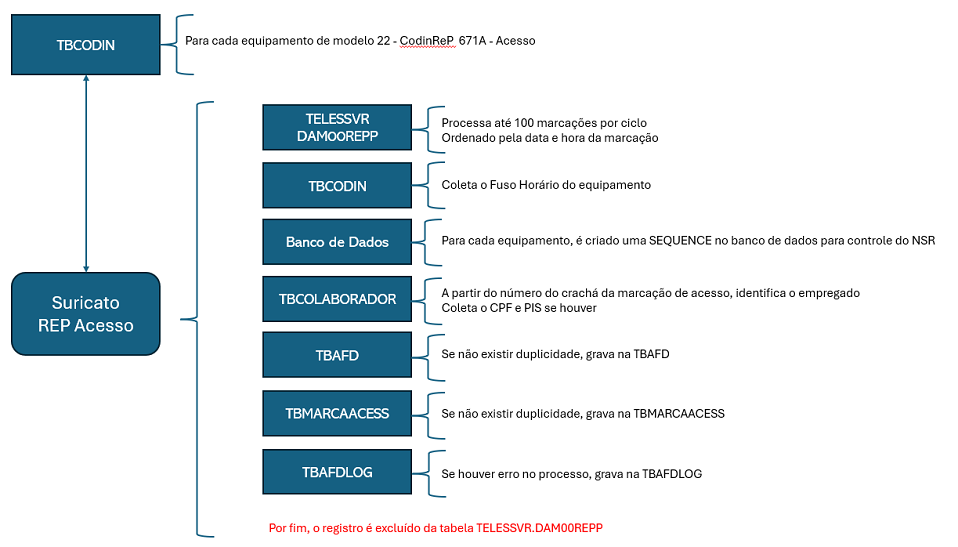 Suricato-RepAcesso é a aplicação JAR (Java) que executa a regra de negócio coletar marcação de equipamento de acesso e transformar em marcação REP 671 A e :
