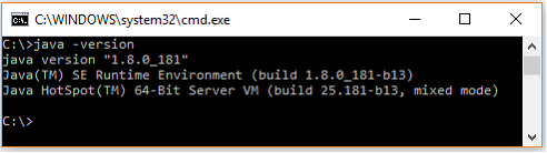 Através do prompt do DOS, digite o comando: C:\java -version. Você deverá ver algo semelhante à imagem abaixo.