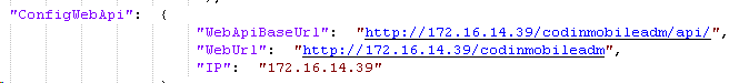 "WebApiBaseUrl": Campo que indica a API do sistema CodinMobile, responsável por subir as marcações do App para o ADM;