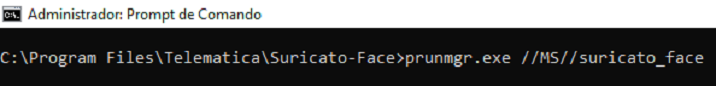 Abra o Prompt de Comando como Administrador, acesse o diretório do Suricato Face e execute o Comando prunmgr.exe //MS//suricato_face