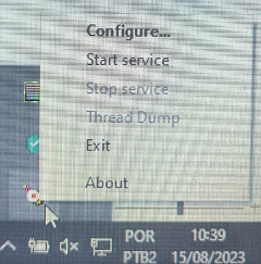 Será criado um trayicon ao lado do relógio, com o botão direito clique em configure