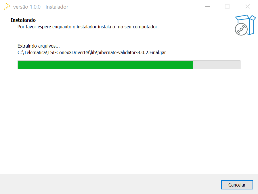 Ao Selecionar o Local da Instalação, será iniciado a Extração dos Arquivos e a instalação do Serviço