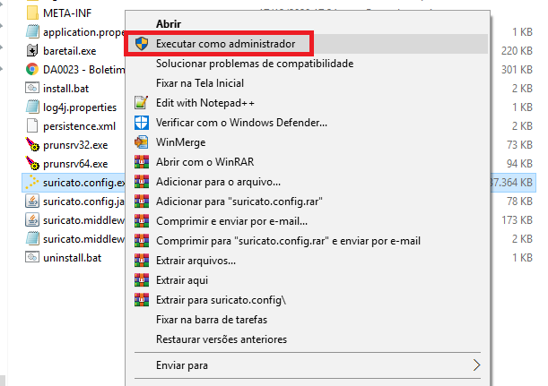 Ao acessar o diretório procure o executável com nome de "suricato.config.exe" execute o mesmo como administrador.