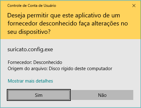 É necessário permitir que o aplicativo faça alterações se o servidor que está sendo executado tenha controle de usuário, caso tenha autorize clicando no botão "SIM".