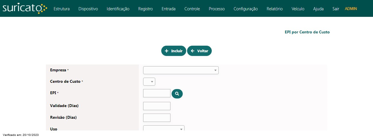 Exemplo - Cadastro EPI por Centro de Custo