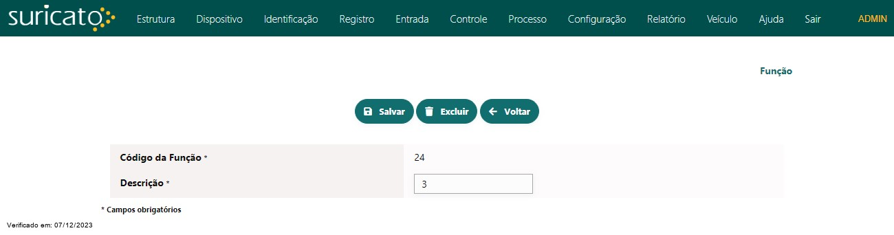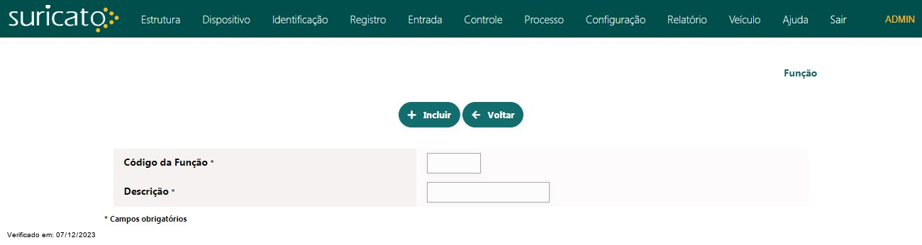 O registro de Função está associado às funções de armazenamento permitidas nos equipamentos Codins e estão limitados a até dez delas.
