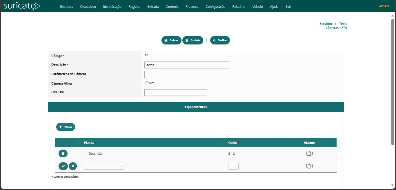Pré-requisitos: No sistema deve ter cadastrado ao menos um: Planta; Codin; Servidor CFTV