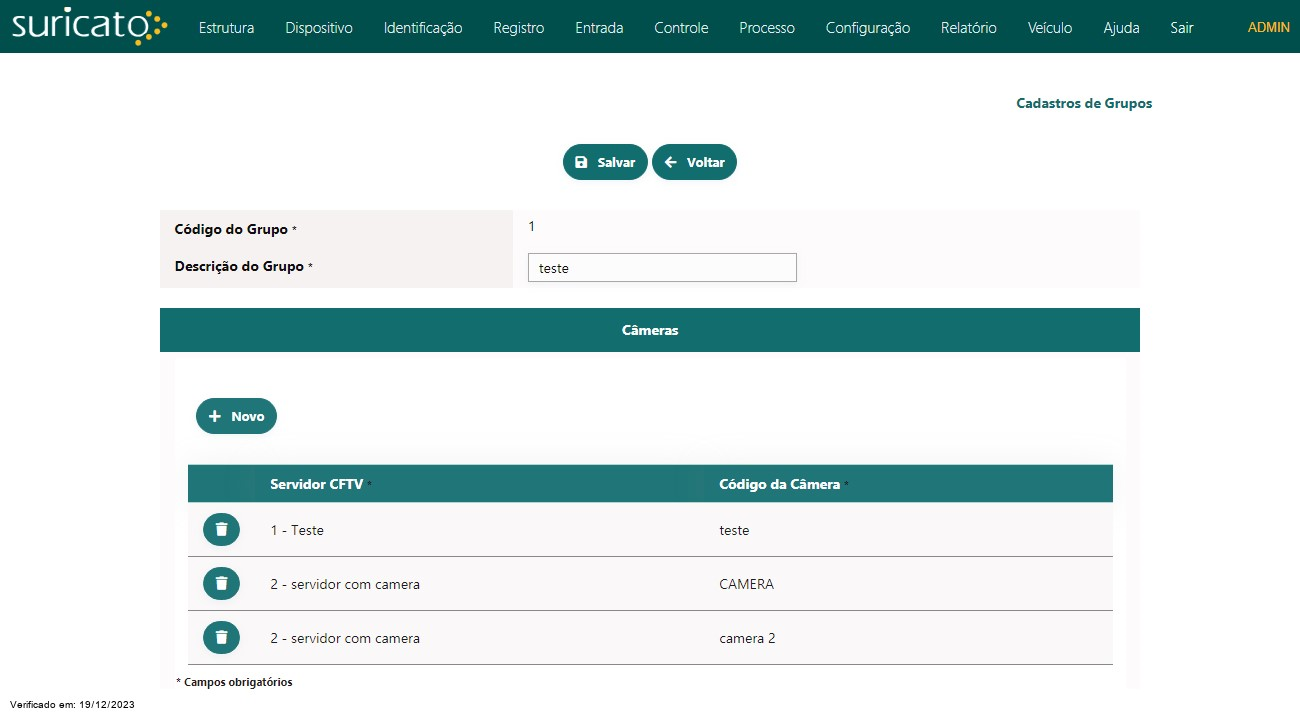 Código do Grupo: Campo que informa o ID de cadastro do grupo de câmeras.