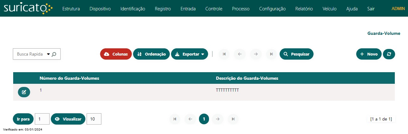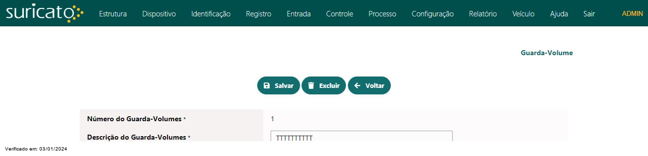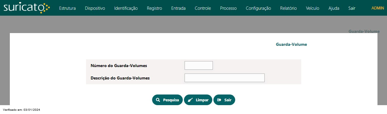 A principio a função de função de cadastro de Guarda Volume no SURICATO é para controlar os locais de guardar volume (mochilas, bolsas e afins) registrando no SURICATO.