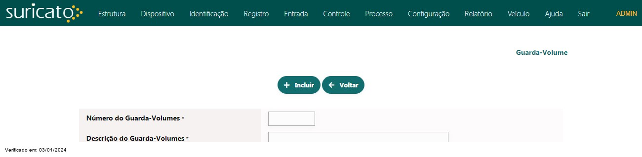 Preencha os campos de acordo com o cadastro da guarda volume e finalize clicando no botão Incluir Registro