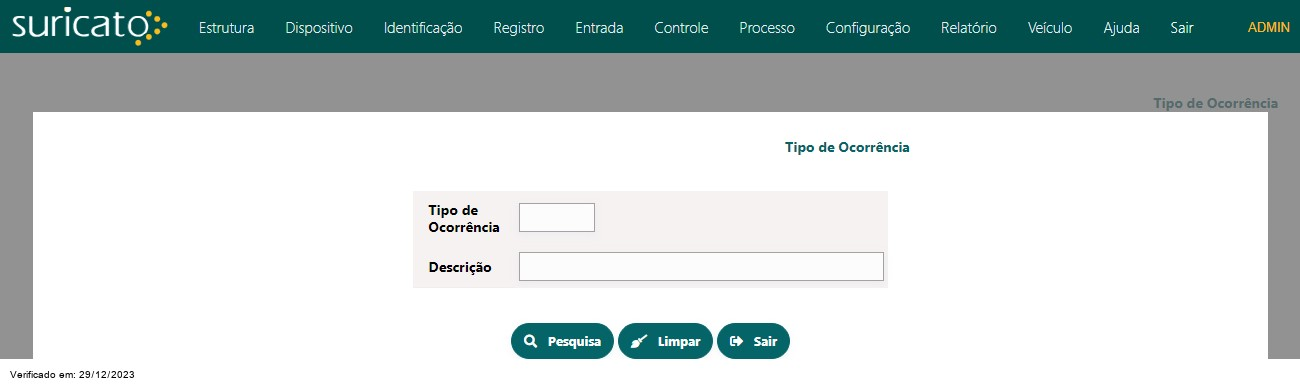 Descrição: Campo para filtrar os Tipos de Ocorrência pela sua Descrição