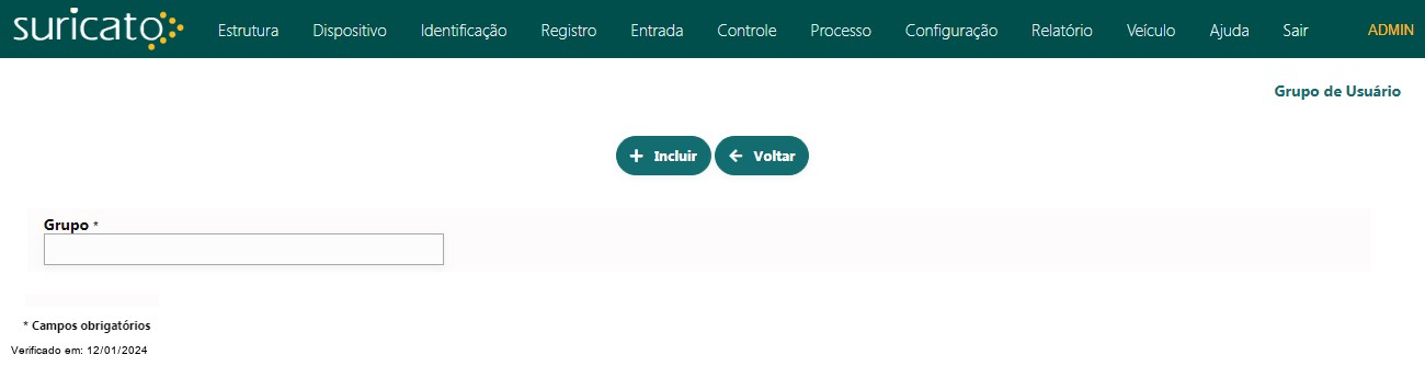Ao clicar em Novo para cadastrar um novo grupo de usuários, o SURICATO vai te redirecionar à tela de cadastro de grupo de usuários, nela vai estar habilitado apenas para você colocar o nome e vincular os usuários cadastrados no SURICATO ao grupo de usuários que está cadastrando atualmente.