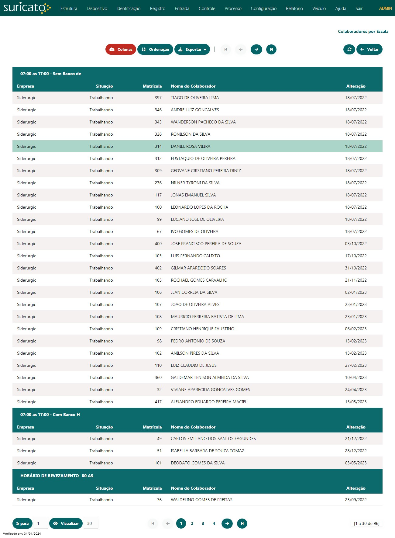 Nesse relatório, extraímos as informações de colaboradores com relação por escala no SURICATO.
