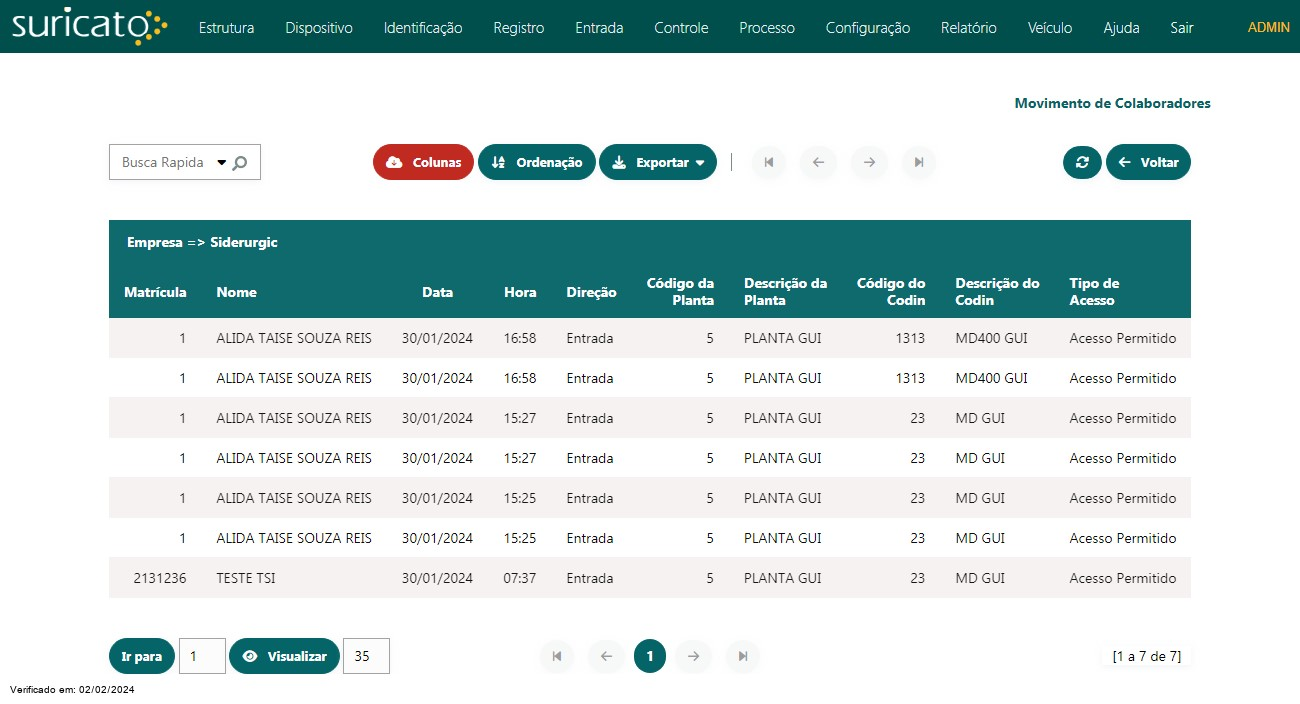 Nesse relatório, extraímos as informações de movimentações de colaboradores no SURICATO.