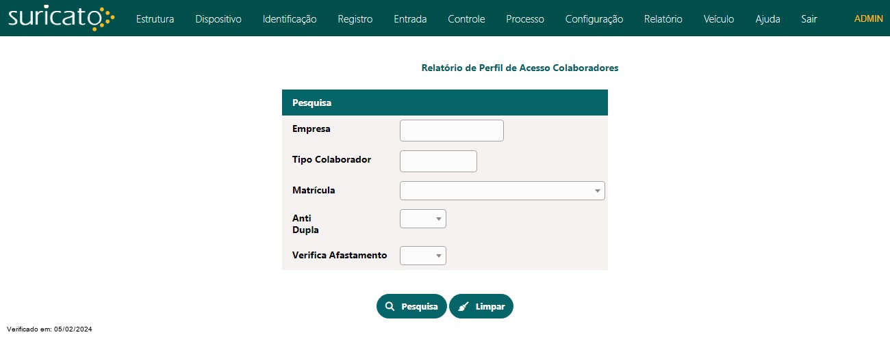 RELATÓRIOS | CONSULTA IMPRESSA | RELATÓRIO DE PERFIL DE ACESSO COLABORADORES