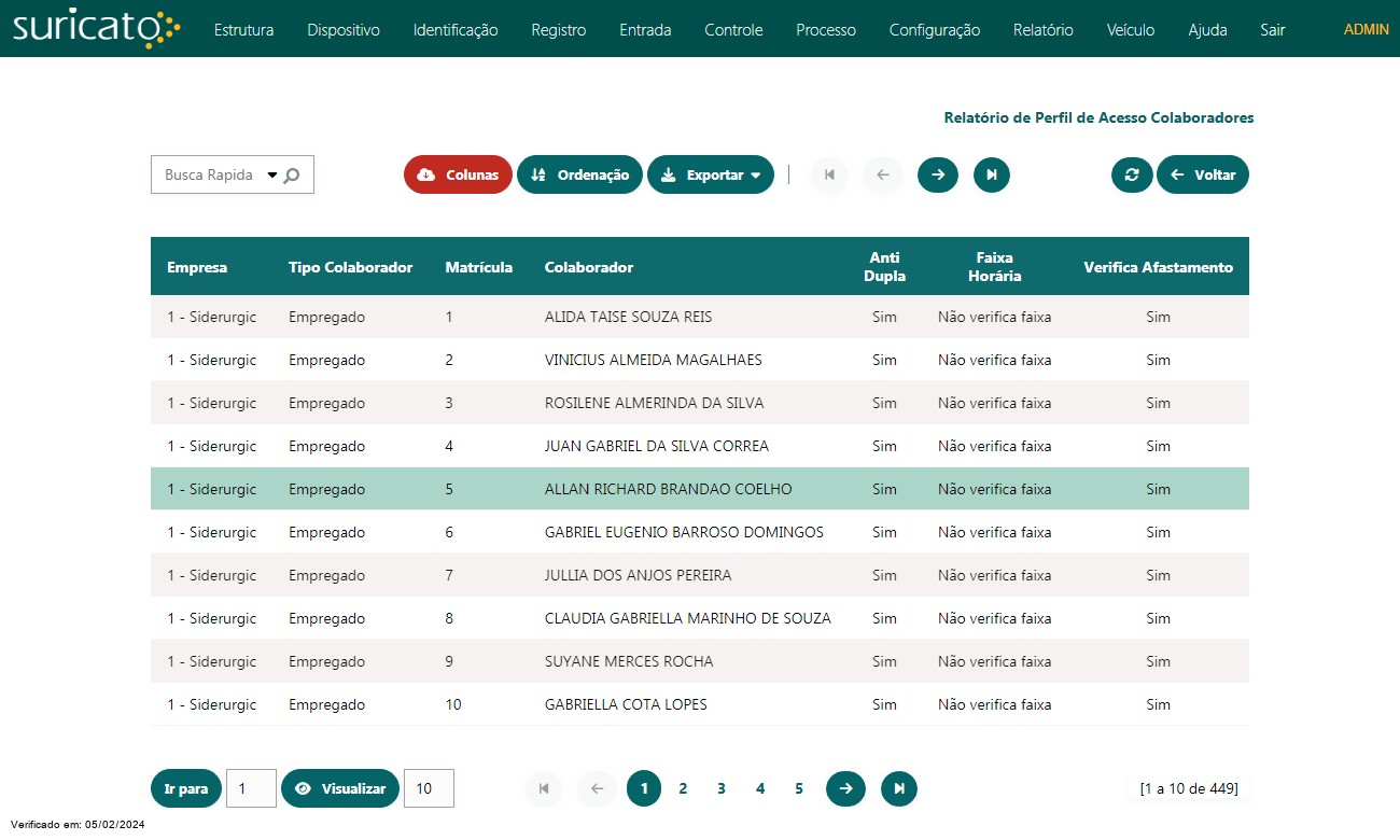 Nesse relatório, extraímos as informações sobre os perfis de acesso de colaboradores no SURICATO.